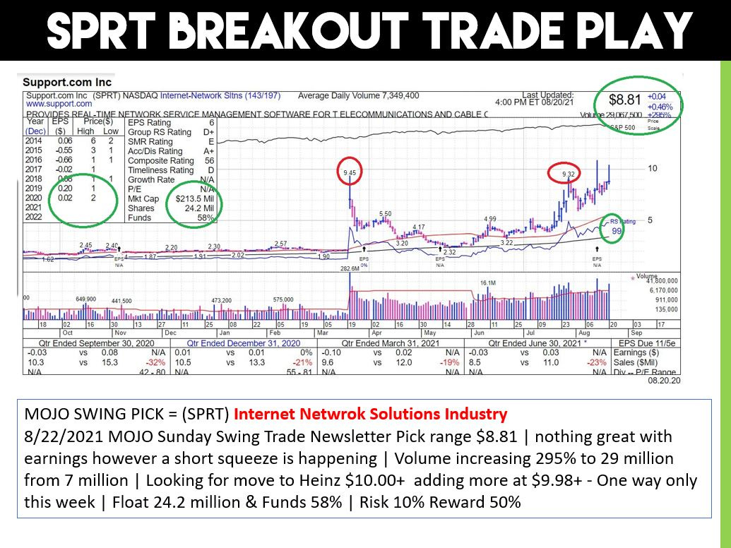This is not out of the normal as the week before in the newsletter was SPRT pick at $8.81 went to $59.00