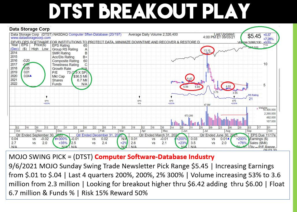 Data Storage symbol $DTST has made a big 🚀 move higher. Here is the pick from Sunday Newsletter 9/6 picked at $5.45 last trade $7.55