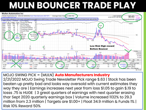 I hit the Mullen Automotive trade at $.63 cents and in 2 days BAMMMMM!!!!! $2.00 just today!!