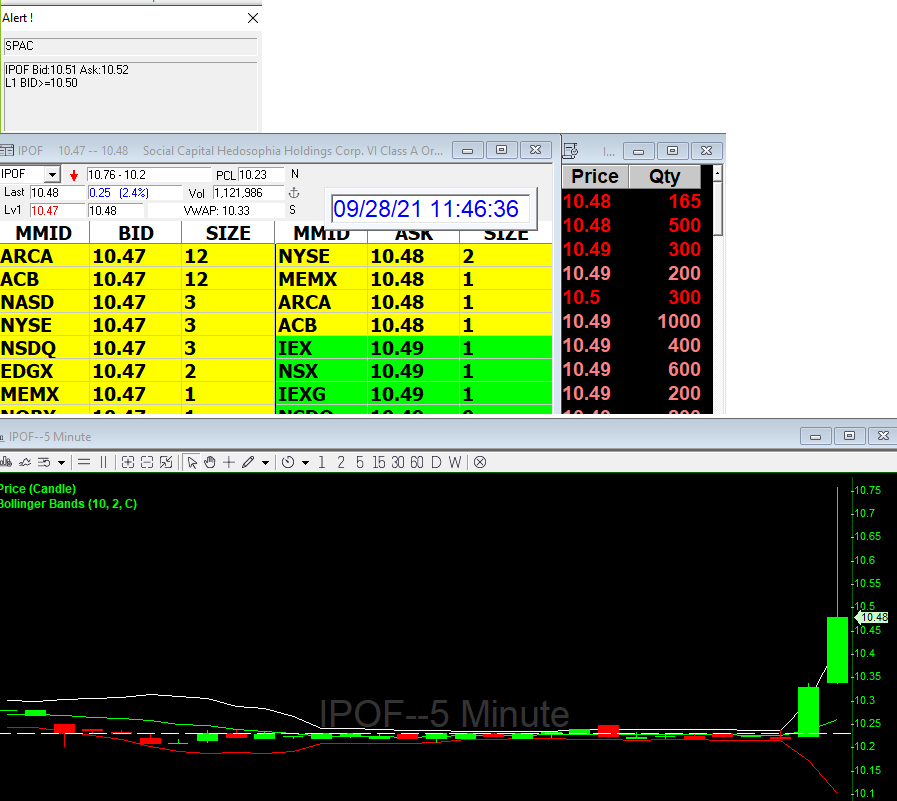 I have several SPACs to set alert on my platform when spike and we have one. The symbol is $IPOF - see alert and level 2 and chart below - may continue higher and higher. This usually goes to paid subscribers but I wanted to share with you today on the FREE list. This is just a taste for $7.00 month you canβt go wrong as subscriber of this newsletter.